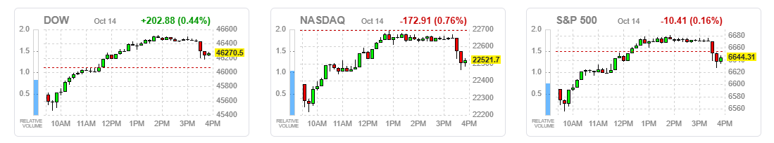 Stocks opened at their lows yesterday after China returned fire at the Trump administration overnight with sanctions on the US divisions of a South Korean ship builder. The sell-off did not last long, as third-quarter earnings reports from several of our largest banks were much better than expected, lifting sentiment. The major market indexes fell back into negative territory in the final hour after President Trump threatened China with a cooking oil embargo in his latest form of retaliation. I see cooking oil as a pea shooter, whereas rare earths are a bazooka in this ongoing trade dispute. Ultimately, the Trump administration has to come to a new agreement with China that de-escalates trade tensions, which should be interpreted as bullish by the market.