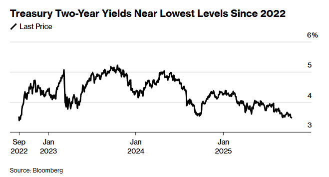 The most important development from yesterday’s session came from Chairman Powell during a speech in Philadelphia. In my view, he insinuated that another rate cut was coming at the end of this month when he stated that “the downside risks to employment appear to have risen,” based on a “wide variety of public- and private-sector data that have remained available” after the government shutdown. While acknowledging that the rate of inflation remained elevated at 2.9%, this seemed like a lesser and more transitory concern given that it has been due to core goods price increases from tariffs. The two-year Treasury yield, which is a proxy for where the market sees the Fed’s short-term rate headed, fell to a three-year low of 3.47%.